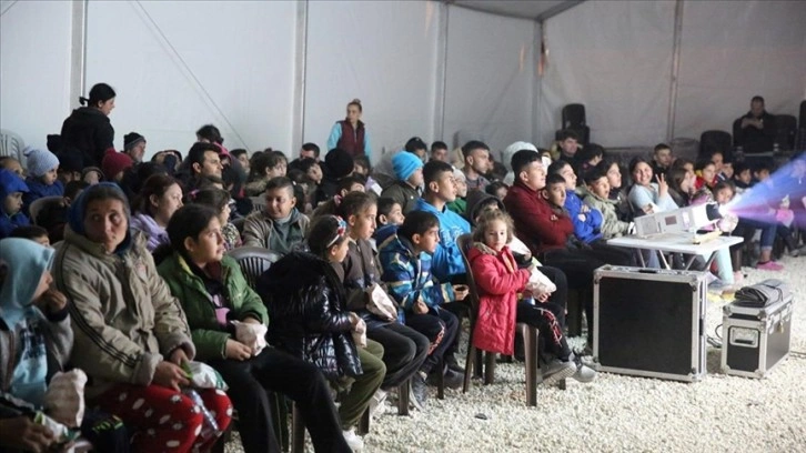 Bu kapsamda Hatay'ın Defne ilçesine giden Kocaeli Şehir Tiyatroları, depremden etkilenen çocuklar için çadır kentte sinema ortamı kurdu.