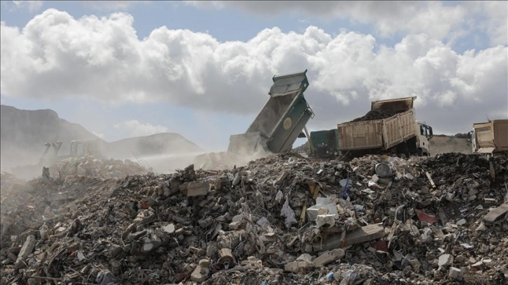 Hayatın normale döndürülmesi için çalışmaların aralıksız sürdüğü kentte görevli ekipler, enkaz alanlarındaki molozları iş makineleriyle kamyonlara yüklüyor.