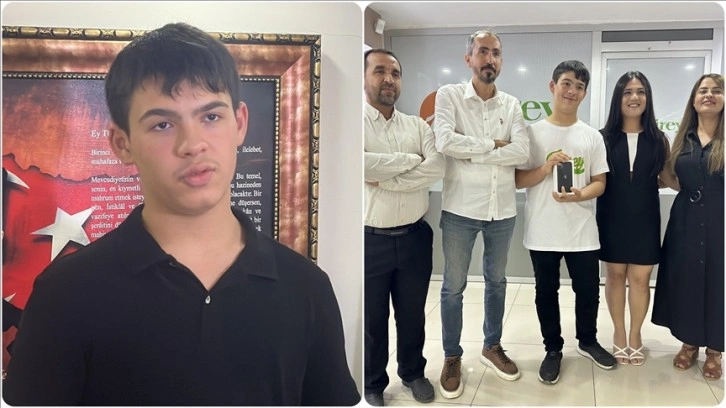 Eğitim kurumu yetkilileri başarısından dolayı Arda Köker'e cep telefonu hediye etti.