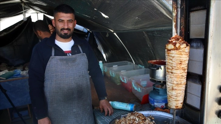 Çadırda Hatay usulü döner yapan Boğa, çadırın içine ve dışına bıraktığı masalarda müşterilerini ağırlıyor.
