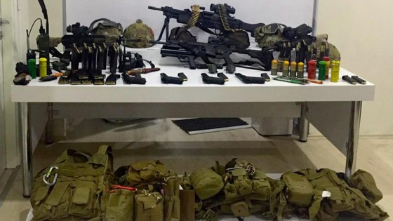 Yerleşke içerisindeki bina, lojman ve arazide arama yapan ekipler, kadınlar tuvaleti içerisindeki gizli bir bölmede, 1 dürbün takılı MG4 ayaklı ağır makineli tüfek, 2 HK416 üzerinde gece görüş dürbünü ve fener takılı uzun namlulu makineli tüfek, 1 HK416 ibareli üzerinde bomba atar takılı uzun namlulu makineli tüfek, 4 tabanca, 2 el bombası, 9 sis bombası, 1 gaz bombası, 4 bomba atar fişeği, 928 mermi, 36 yedek şarjör, 2 işaret fişeği tabancası, 4 üzerinde kamera bulunan askeri kask, 2 askeri kask üzerinde takılan operasyon gözlüğü, 2 askeri kar maskesi, 1 askeri bere, 4 hücum yeleği, 3 telsiz ve bu telsize ait kulaklık, bağlantı aparatı ve yedek batarya, 3 aydınlatma çubuğu, 3 komando tipi bıçak ve 1 çakı, 2 bileğe takılan navigasyon cihazı, 1 başa takılan aydınlatma lambası, 2 pusula, 1 el feneri, 3 eldiven, 4 bacağa bağlanan tabanca kılıfı, 2 şarjör kılıfı, çeşitli ebatta 27 pil ele geçirildi.