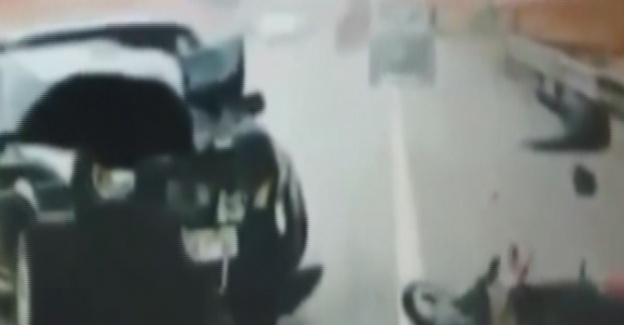 Brezilya’da bir motosikletli, hatalı sollama yapan otomobille çarpıştı. Bir anda önüne çıkan aracı fark etmeyen motosiklet sürücüsü, son bir hamleyle manevra yapmaya çalışsa da otomobile çarpmaktan kurtulamadı. Çarpmanın etkisiyle motosikletli adam havada taklalar atarak asfalta çakıldı. Kaza sonrası otomobil ve motosiklette maddi hasar meydana gelirken, sürücülerin akıbeti ise bilinmiyor.