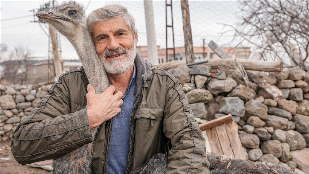 Fesih Ateş, büyüttüğü deve kuşunun kendisine çok alıştığını söyledi.