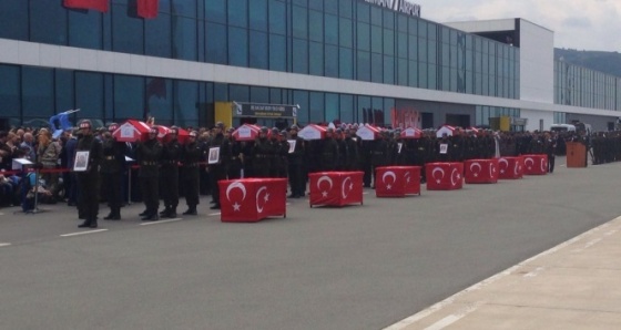 Helikopter kazasında hayatını kaybeden Giresun İl Jandarma Komutan vekili Yarbay Sadettin Şahin ve eşi Nihal Şahin, helikopter pilotu yüzbaşı Hilmi Özer, Giresun Jandarma Bölge Komutanı Tuğgeneral Mustafa Doğru'nun eşi Nuran ve kızı Berrin Doğru, Kurmay Başkanı Binbaşı Ünal Bayhan'ın eşi Didem Bayhan ve Ast. Uzman çavuş Adem Kara'nın eşi Sema Kara için bugün Giresun-Ordu Havaalanı'nda tören düzenledi. Törene Genel Kurmay Başkanı Hulusi Akar, Jandarma Genel Komutanı Galip Mendi ile kuvvet komutanları, Başbakan Yardımcıları Numan Kurtulmuş ve Nurettin Canikli, Çalışma ve Sosyal Güvenlik Bakanı Süleyman Soylu, Giresun, Trabzon ve Ordu valileri, Giresun ve Ordu Belediye başkanları, AK Parti ve CHP milletvekilleri ile şehit yakınları ve askeri personel katıldı. Törende Giresun İl Müftüsü Necati Oral dua yaptırırken, törenin ardından şehit cenazeleri törenle memleketlerine gönderildi.