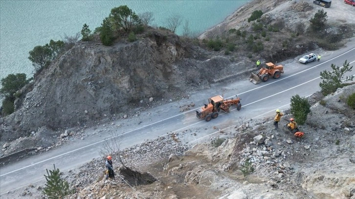 Ünsal, "Bugün de 3 kişilik endüstriyel dağcı ekibimiz yamaçta kayaların olduğu alanda çalışma yapıyor. Tedbir amaçlı trafiği kontrollü olarak tek şerit olarak vermeye devam edeceğiz. Dağcı ekiplerimiz kaya temizleme çalışmalarına yarın da devam edecek. Çalışmaların tamamlanmasıyla birlikte kara yolunu çift şerit olarak trafiğe açacağız." şeklinde konuştu.