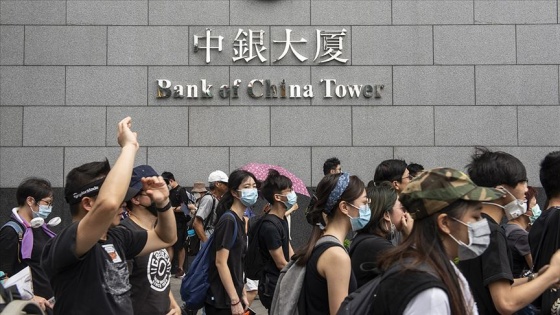 Çin ve Hong Kong hükümeti aleyhine slogan atan, çoğunluğu beyaz yakalı çalışanlardan oluşan göstericiler polis şiddetini protesto etti.
