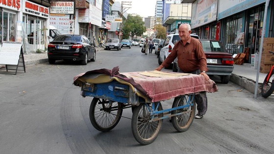 Kayseri'de, 1995'te emekli olduktan sonra bir köşesine çekilip oturmak yerine çalışmayı tercih eden 4 çocuk babası Yavuz, 23 yıl önce edindiği 4 tekerlekli el arabası ile eski sanayi içinde sunta, masa, sandalye ve benzeri eşyaları 5-10 liraya taşıyarak ekmeğini kazanıyor.