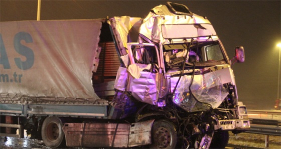Kaza, saat 20.00 sıralarında TEM Otoyolu Elmalık mevkiinde meydana geldi. Edinilen bilgiye göre, TEM Otoyolu Ankara istikametine seyir halinde olan Mehmet Salih Seyitoğlu idaresindeki 33 AET 86 plakalı demir yüklü tır, aynı yönde ilerleyen Abdulsamet Erenoğlu yönetimindeki BV-JG-71 plakalı tıra arkadan çarptı.