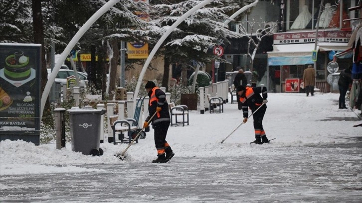 Kar kalınlığının yüksek kesimlerde 10 santimetreye ulaştığı kentte ekipler, yollarda tuzlama çalışması da yaptı.