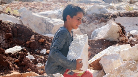 Esed rejiminin Halep'in Ayn Cera köyündeki saldırılarından kaçarak İdlib'deki Kerim Kampı'nda derme çatma bir çadıra sığınan Hamahir, ailesini geçindirmek için sabahın erken saatlerinde taş kırmaya başladığını anlattı.