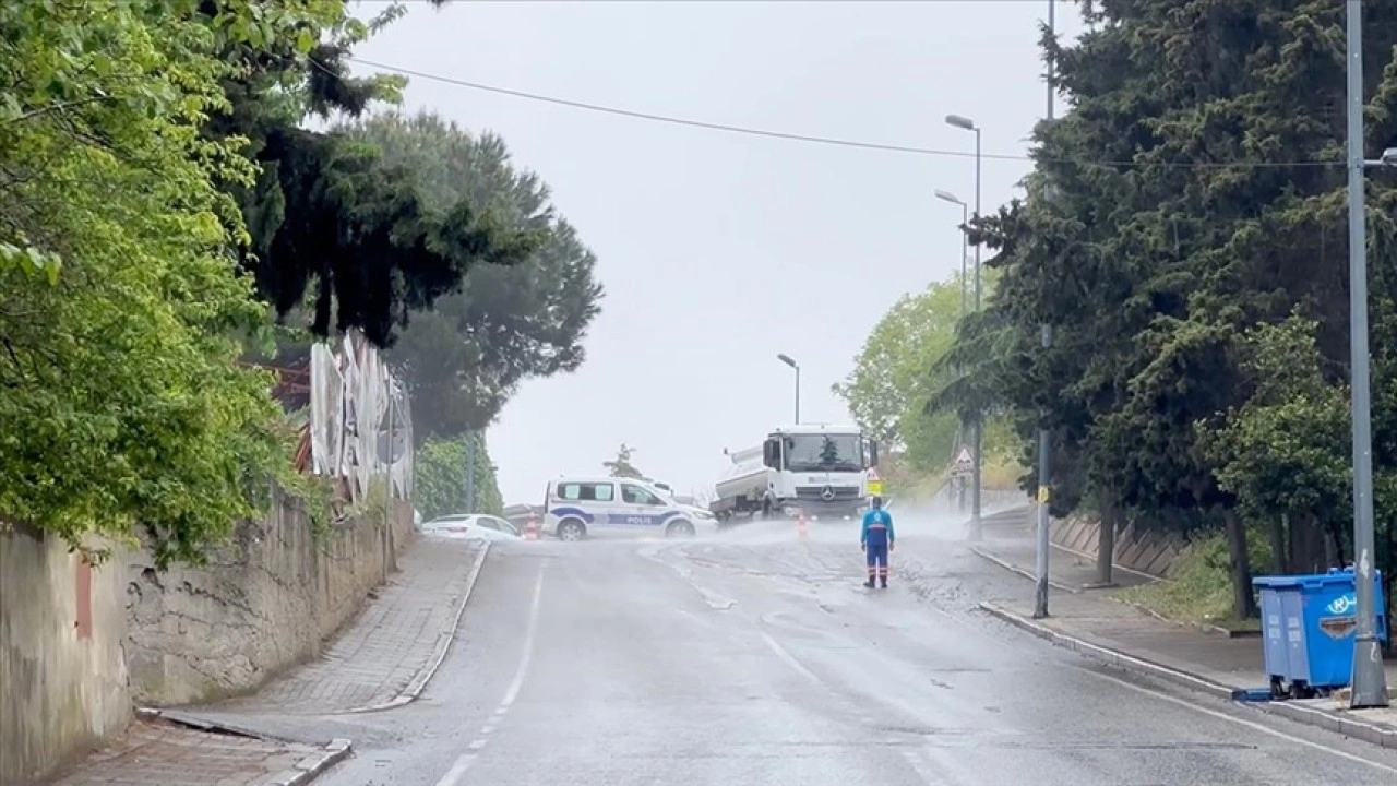 Kazalardan sonra caddeye ulaşan belediye ekipleri ise tazyikli suyla yolu yıkayarak mazotu temizlemeye başladı.