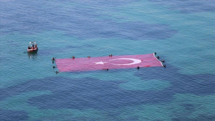 Su altı arama kurtarma ekipleri, abidenin yakınındaki koydan denize girerek dev bayrak açtı. Söz konusu bayrak, 22,5 metreye 15 metrelik boyutuyla Türkiye'de Çanakkale şehitlerini anmak amacıyla denizde açılan en büyük bayrak oldu.