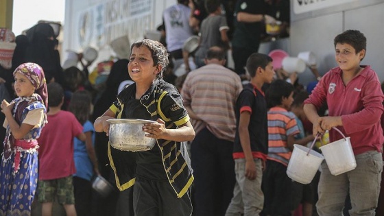 İnsan Hak ve Hürriyetleri (İHH) İnsani Yardım Vakfı, Cerablus ta sıcak yemek dağıttı.