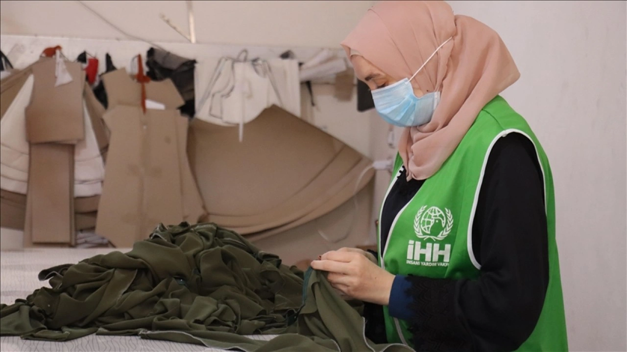 Tahiroğlu, yetim annelerinin meslek edinmeleri için birçok proje gerçekleştirdiklerini belirterek, "Atölyede çalışan 18 yetim annemiz, günde 300 parça kadın ve çocuk kıyafeti üretiyor. Üretilen kıyafetler, bölgede bulunan ücretsiz hayır mağazalarımız aracılığıyla savaş mağduru ve ihtiyaç sahibi ailelere ulaştırılıyor." dedi.