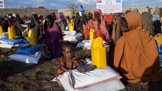 İnsan Hak ve Hürriyetleri (İHH) İnsani Yardım Vakfı, kuraklığın açlık, hastalık ve ölümlere neden olduğu Somali'de kamplarda yaşam mücadelesi veren binlerce aileye gıda ve su yardımında bulundu.