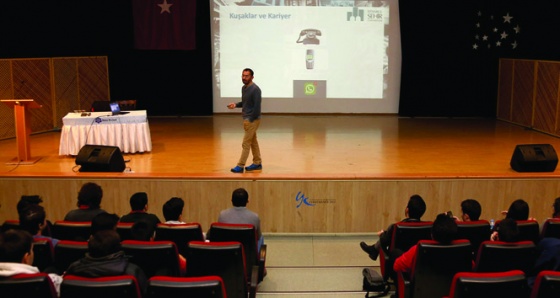 “Kariyer: Yeğenim Nireye?” isimli sunumunu yapan Ali Osman Uymaz öğrencilere gelecekteki iş sahaları, yeni meslekler ve kariyer fırsatları hakkında bilgiler verdi.