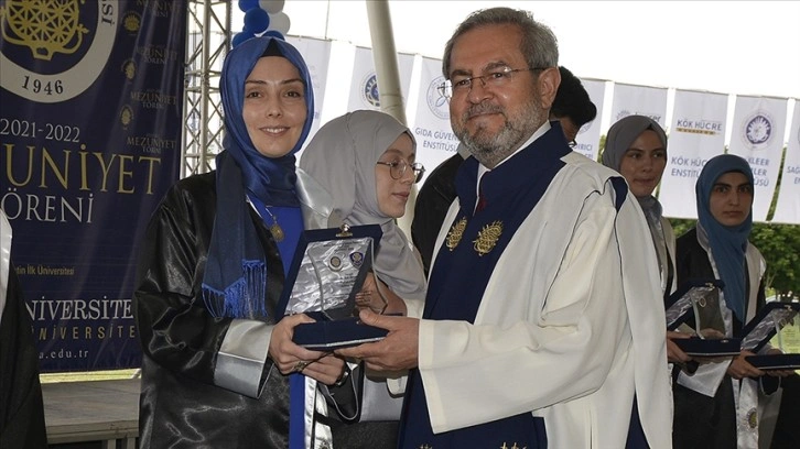 Törende, tüm mezunlar adına konuşan Nafiye Aydın, fakülteden birincilikle mezun olmanın gururu, mutluluğu ve heyecanını yaşadığını ifade etti.