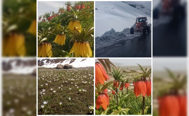 Baharın gelmesiyle bir taraftan kardelenlerin yanı sıra ters laleler de açarken, bir taraftan da aynı güzergah üzerinde bulunan 3 bin rakımlı Karapet Geçidi’nde ise metrelerce kar kütleleri kış mevsimini andırıyor.