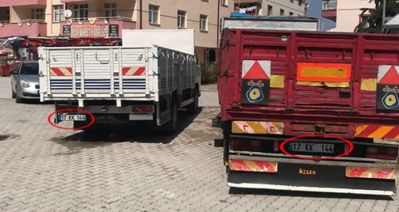 Olay, merkez Selçuklu ilçesi Akşemsettin Mahallesi İkiztepe Sokak üzerinde meydana geldi. Edinilen bilgiye göre, sokak üzerinde iki farklı renkli aynı plakalı kamyoneti gören vatandaşlar durumu polis ekiplerine bildirdi. İhbar üzerine olay yerine gelen polis ekipleri sokak üzerindeki park yerinde aynı marka ve modelde biri kırmızı diğeri beyaz iki kamyonette 17 KK 144 plakanın takılı olduğunu gördü. Polis ekiplerinin araç sorgusunun ardından beyaz olan aracın plakasının sahte olduğu anlaşıldı. Aracın bilgilerinden araç sahibine ulaşan polis ekipleri nakliyecilik yaptığı öğrenilen M.A.B.'yi aracın başına çağırdı. Beyaz kamyonetin şase bilgilerinden gerçek plakasının 42 TY 554 olduğunu belirleyen polis ekipleri, aracın çekme belgeli olduğunu tespit etti. Araç sahibinin ise çekme belgeli olan beyaz kamyoneti de nakliyecilikte kullanmak için böyle bir yola başvurduğu öğrenildi.