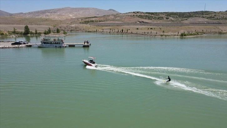 Turistik Doğu Ekspres Treni'nin de 3 saat mola verdiği ilçeye gelen misafirler, barajda su kayağı ve kano da yapıyor.