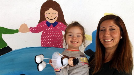 Tekirdağ'da yaşayan öğretmen ve yazar Süreyya Ülkü Güler, down sendromlu kızı için yaptığı oyuncak bebeğin resimlerini kaynaştırma eğitimi verilen anaokulunun duvarlarına çizerek farkındalık oluşturuyor.
