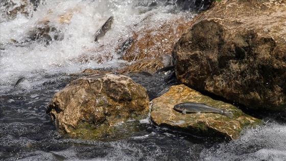 Su seviyesi yeniden yükselen derede balıkların göçü sürüyor.