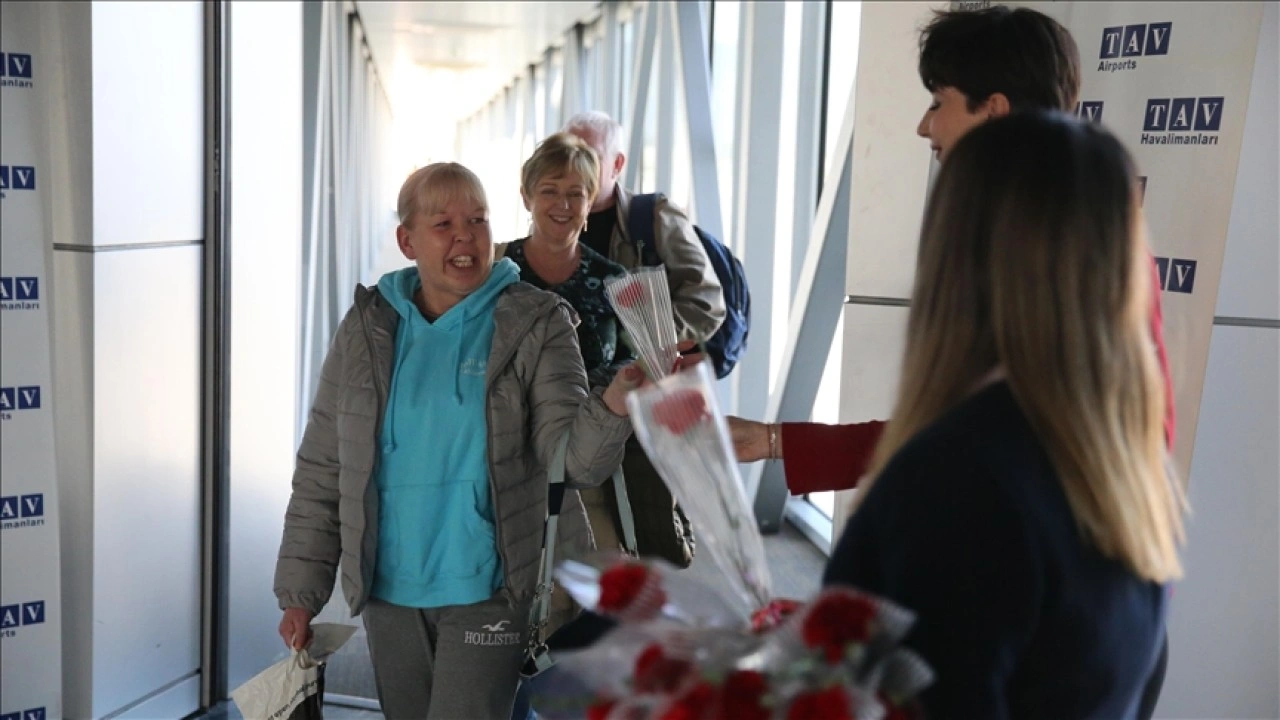 Milas-Bodrum Havalimanı'na iniş yapan 3 uçakla gelen toplam 502 yolcu için karşılama töreni düzenlendi. Uçaklardan inen turistlere havalimanı yetkililerince çiçek verildi.