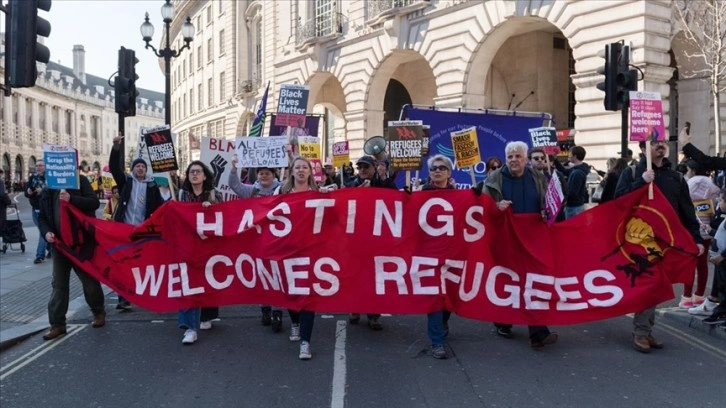 İngiliz hükümetinden ayrımcılık ve ırkçılığa karşı harekete geçmesini isteyen göstericiler, ülkede "mülteci karşıtı yasa tasarısı" olarak gösterilen Uyruk ve Sınırlar Yasa Tasarısının geri çekilmesi çağrısında bulundu.