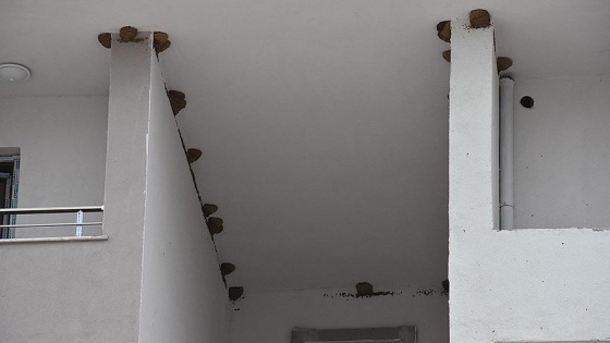 TOKİ tarafından 2 yıl önce başlatılan 252 konut projesinin tamamlanma aşamasına gelen 5 bloğuna kırlangıçlar yuva yaptı.