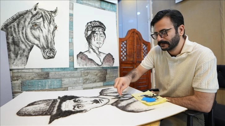 Iraklı ressam ve berber Falih, AA muhabirine yaptığı çizimlerini anlattı.