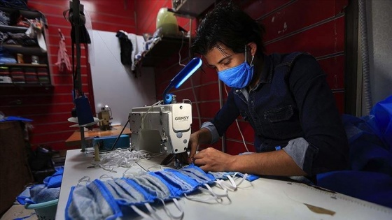 Bağdat'ın doğusunda Sadr Bölgesi'nde kurdukları derme çatma atölyede çalışan Hüseyin ve Seccad kardeşler, yeni tip koronavirüse (Kovid-19) karşı mücadele kapsamında, maske yaparak halka dağıtıyor.
