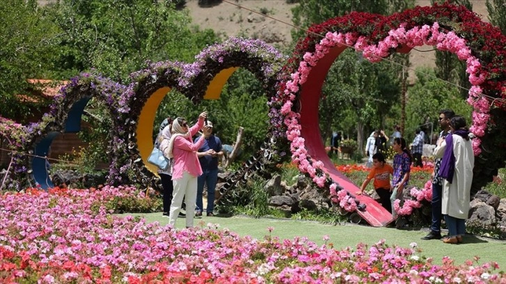 Rengarenk lalelerden yapılan çeşitli figürler, gökkuşağı ve çiçek tüneli ziyaretçilerden yoğun ilgi görürken, laleler arasında gezenler bol bol hatıra fotoğrafı çektiriyor.