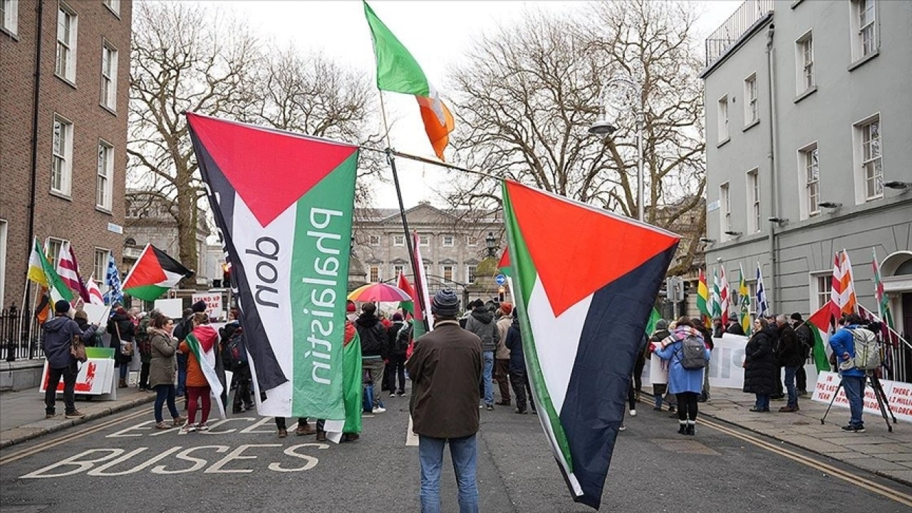 İşgal Altındaki Topraklar Yasa Tasarısı'nın yürürlüğe girmesi talebi ve Filistin'e destek amacıyla Dublin'deki İrlanda Parlamentosu binası önünde 12 saatlik nöbet tutuldu.