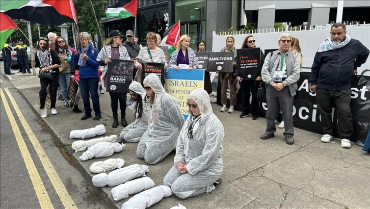 İsrail'in Dublin Büyükelçiliği önünde, Nekbe'nin (Büyük Felaket) 76'ncı yılı dolayısıyla düzenlenen Filistin'e destek gösterisine onlarca kişi katıldı.
