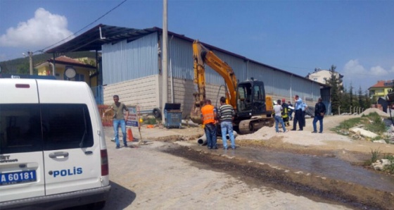 Denizli’nin Acıpayam ilçesinde kanalizasyon işinde çalışan işçinin ayağı kepçeye sıkışarak koptu.