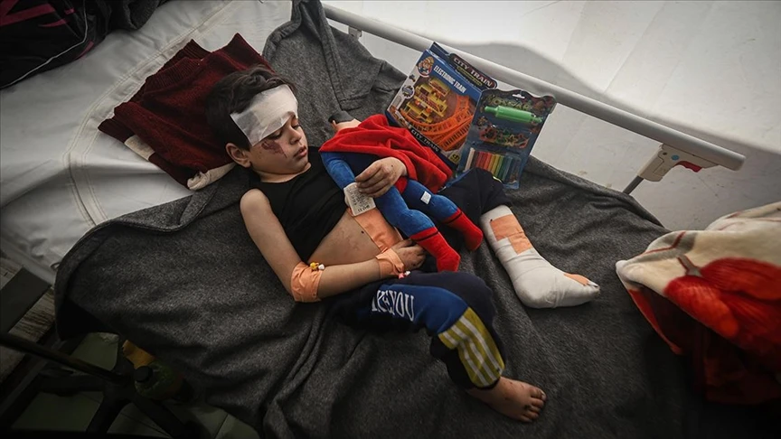 İşgalci İsrail bombardımanında ailesinin evi tamamen yıkılarak en yakınlarını kaybeden ve saldırıdan mucizevi bir şekilde sağ kurtulan ve Kuveyt Hastanesi'ne kaldırılan Ali Farac'ı AA ekibi ziyaret etti.