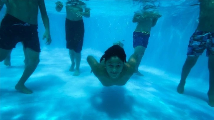 10 yaşındaki Efe Akkaya, havuzda hem eğlendiğini hem de yüzme öğrenmeye çalıştığını belirtti.