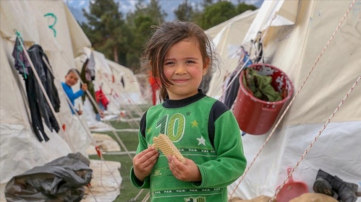 5 yaşındaki Mahmut Alem ise ailesiyle çadırda yaşadığını ifade ederek, "Burada arkadaşlarımla oyun oynuyorum. Burada zaman güzel geçiyor. Futbol oynuyoruz, hamur oyunları ile oynuyoruz. Ama ben en çok koşmayı seviyorum. Arkadaşlarım burada, onları da çok seviyorum." diye konuştu.