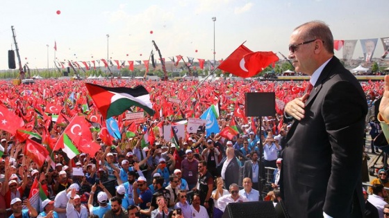 Cumhurbaşkanı Recep Tayyip Erdoğan, Türkiye Gönüllü Teşekküller Vakfı öncülüğünde Filistin halkına destek amacıyla Yenikapı Miting Alanı'nda düzenlenen "Zulme Lanet Kudüs'e Destek" mitinginde yaptığı konuşmada, "İslam dünyası Kudüs imtihanında sınıfta kalmıştır. Sadece İslam dünyası deği, tüm insanlık da sınıfta kalmıştır." dedi.