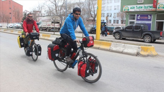 İspanya'dan, farklı ülke ve kültürleri yakından tanımak amacıyla bisikletle dünya turuna çıkan Fernando Martinez ve Marco Mendez, Ağrı'ya ulaştı.