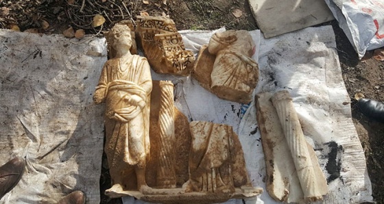 Gözaltına alınan 4 şüpheliden Mehmet D.'nin ev ve eklentilerinde yapılan aramalarda, yaklaşık 1600 yıllık olduğu değerlendirilen ve Roma Dönemi'ne ait olduğu tespit edilen 90 santimetre boyunda ve 70 santimetre çapındaki Sidamara lahdine ait duvarın bir parçası ele geçirildi.