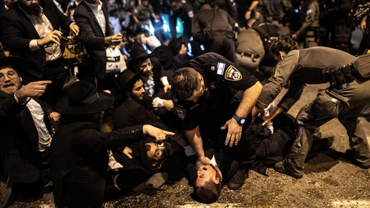 Zorunlu askere alınmalarını protesto için akşam saatlerinde Bney Brak kentindeki Zeev Jabotinsky Caddesi'nde toplanan Harediler, otobüslerin önüne oturarak trafiği kapattı. Göstericilere atlı ve yaya polisler müdahale etti.