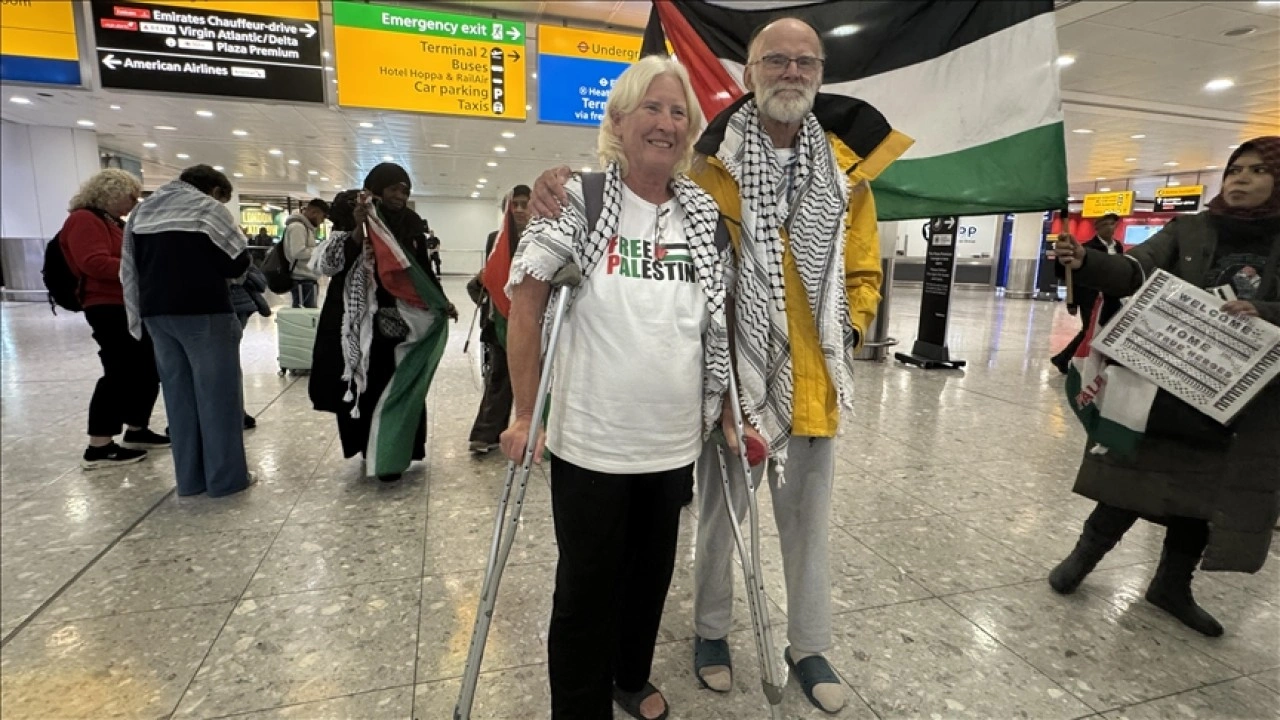 İsrail’in yasa dışı olarak alıkoyduğu filodaki İngiliz vatandaşlarından James (Jim) Hickey, Malcolm Ducker, Hannah Sharpey-Schafer ve Sid Khan, Ürdün’ün başkenti Amman’dan kalkan tarifeli uçakla Londra’ya geldi.