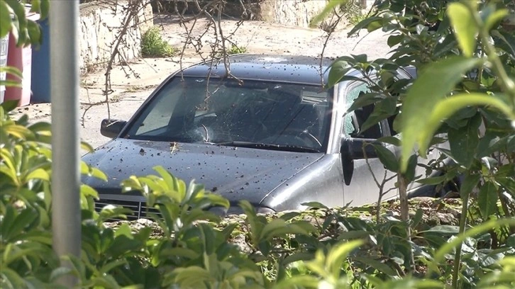 AA ekibinin hedef alınan araca ilişkin çektiği görüntülerde, aracın camlarının kırıldığı, çok yakına düşen füzenin alanda çukur oluşturduğu görülüyor.