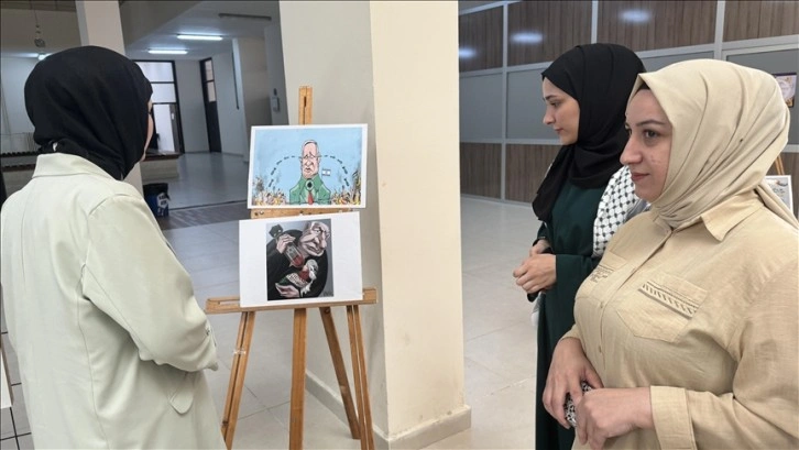 Siirt Üniversitesinde (SİÜ) İsrail'in Gazze'ye saldırılarına tepki için "Karikatürlerin diliyle Gazze soykırımı" temalı sergi açıldı