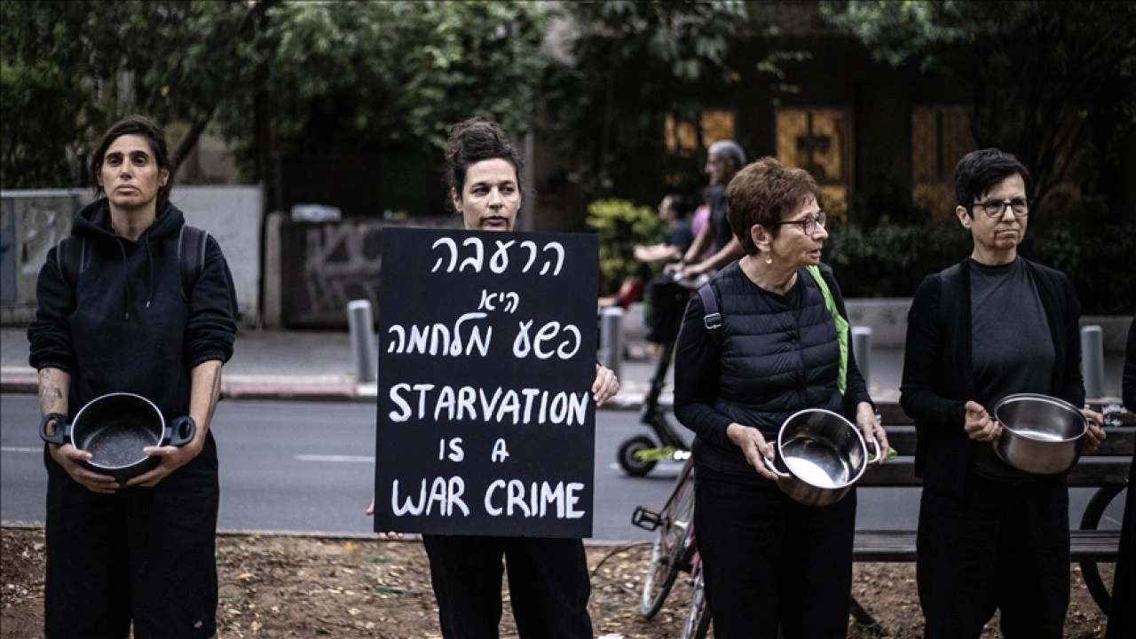 Ellerindeki tencerelerle sessiz bir şekilde bekleyen ve "Aç bırakmak savaş suçudur" yazılı dövizler taşıyan eylemciler, Tel Aviv yönetiminin Gazze'ye yönelik saldırılarının durdurulması ve insani yardım girişine izin verilmesi çağrısında bulundu.