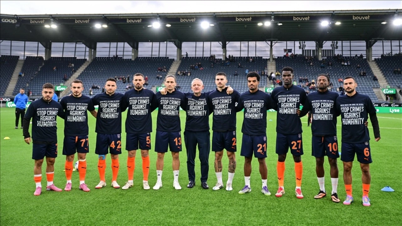UEFA Konferans Ligi 3. eleme turu ilk maçında Norveç ekibi Viking'e konuk olacak İstanbul Başakşehir'de futbolcular, ısınmaya Gazze'ye destek tişörtleriyle çıktı.