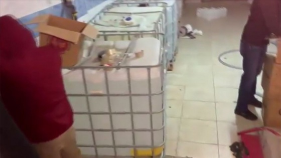 Sahte içki üretimi yapılan imalathanede yaklaşık 6 ton etil alkol ve sahte içki yapımında kullanılan malzemeler ele geçirildi.