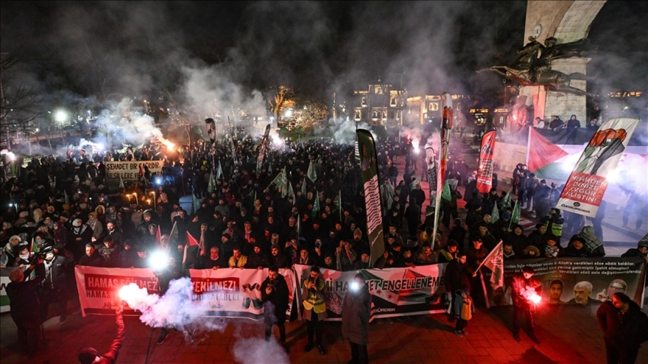 "Rabbimize hamdediyoruz. 15 ayı aşkın zamandır belki dünya tarihinde görülmeyecek bir vahşete, zulme, katliama, soykırıma maruz kalmasına rağmen Gazze, bugün Allah'ın izniyle dimdik ayakta, zalimler ise zelil olmuş durumdalar. Doha'da kabul edilen ateşkese ilişkin olarak katillerin şefi Netanyahu'nun bugün birtakım çekinceler öne sürmesi ve geri adım atma sinyallerine bakmayın. Bütün bunlar sahtekarlıktan başka bir şey değil. Onlar zelil bir şekilde bu anlaşmayı kabul edecekler ama hazımsızlıklarından dolayı birtakım atraksiyonlara giriyor, bazı çekinceler öne sürerek bu işi mecburen kabul etmediklerine kendi kamuoylarını ikna etmeye çalışıyorlar."
