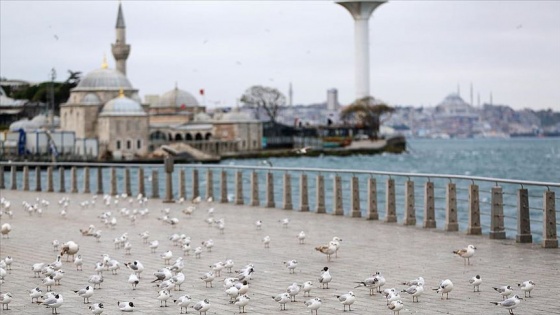 Eminönü de tedbirler kapsamında sessizliğe bürünürken, meydan martı ve güvercinlere kaldı.